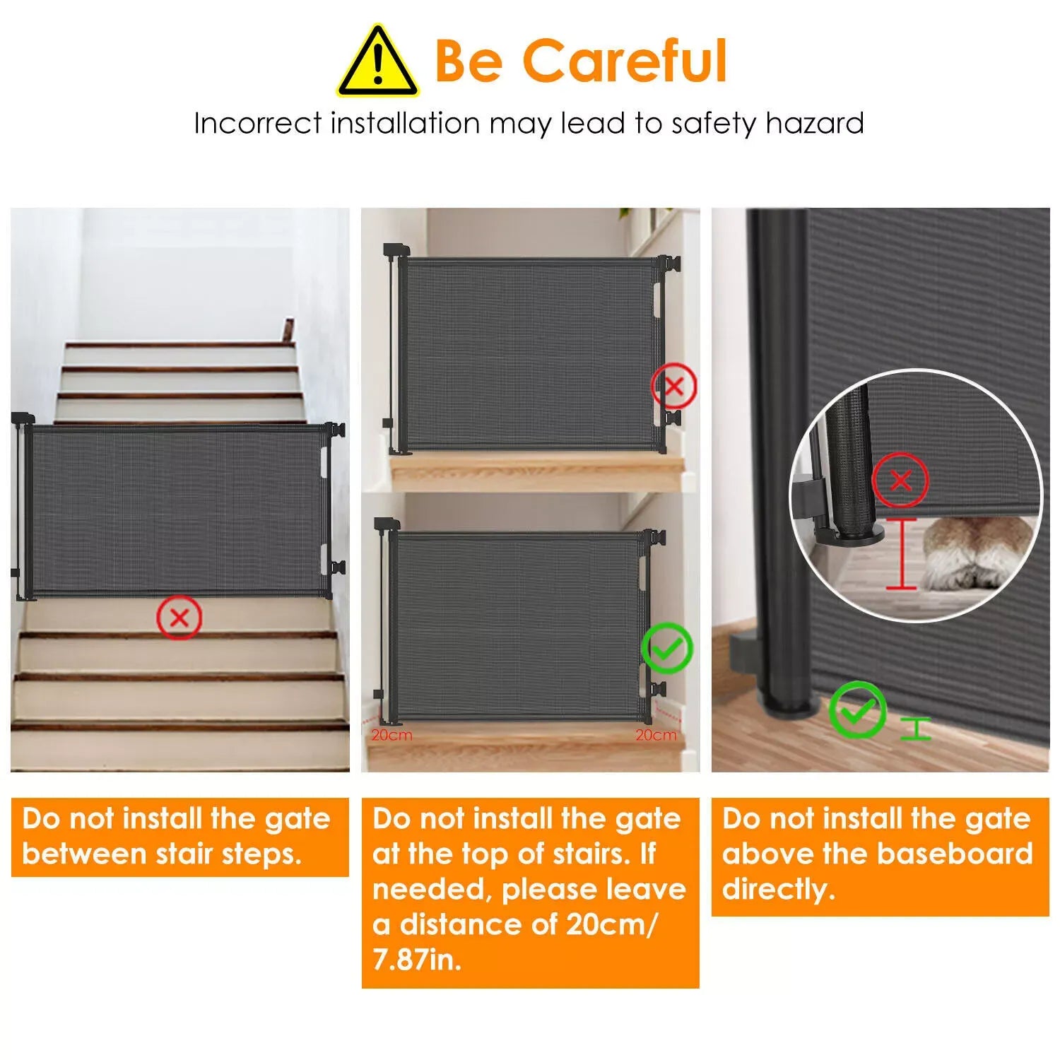 - Retractable Design – Smoothly rolls back when not in use, saving space and avoiding trip hazards compared to traditional metal gates.